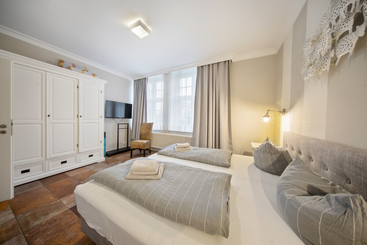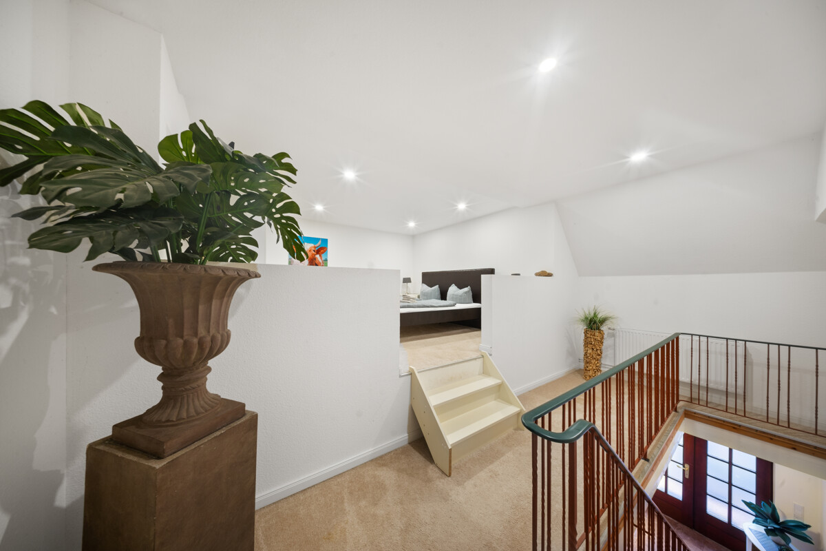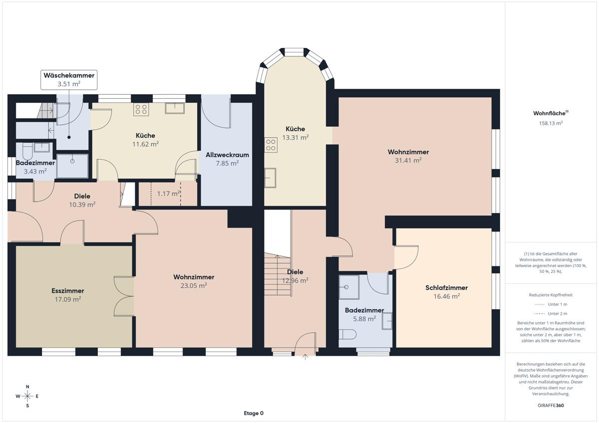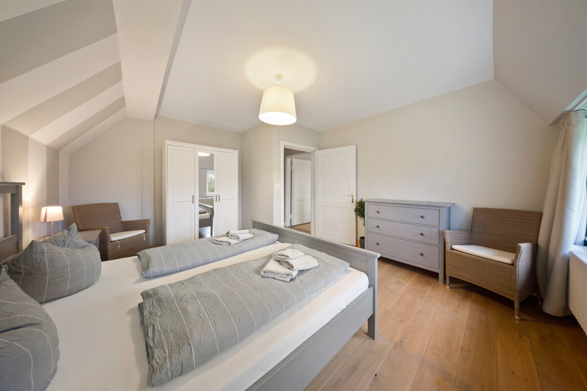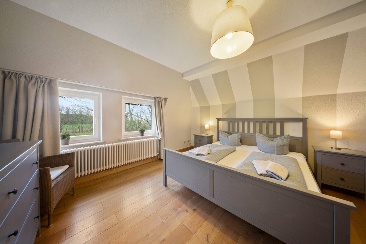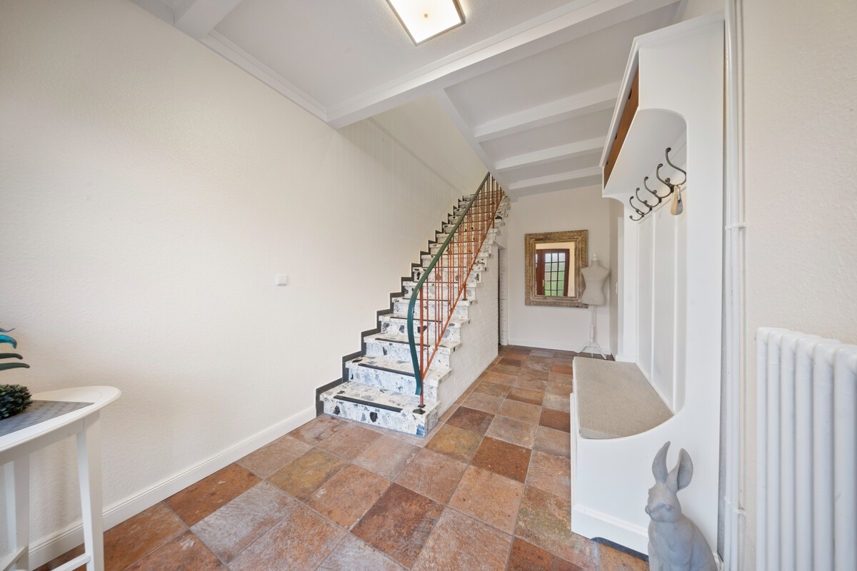 Das denkmalgeschützte Gebäude aus dem Jahr 1936 wurde ursprünglich als Schulhaus errichtet und präsentiert sich heute als außergewöhnliche Immobilie mit historischem Charakter. Aktuell ist das Objekt in zwei Doppelhaushälften aufgeteilt, die bei Bedarf baulich wieder zu einer großzügigen Einheit verbunden werden können. Insgesamt stehen ca. 240 Quadratmeter Wohnfläche auf einem weitläufigen Grundstück von rund 3.859 Quadratmetern zur Verfügung. Das reetgedeckte Haus besticht durch zahlreiche architektonische Details wie den markanten hölzernen Glockenturm als Wahrzeichen, eine Sonnenuhr im Giebel, einen Erker sowie stilgerechte Sprossenfenster. Im Jahr 2006 erfolgte eine umfassende Sanierung, bei der unter anderem Fenster, Haustüren, Fußböden und die Elektrik erneuert sowie das Dachgeschoss zu Wohnzwecken ausgebaut wurden. Die Außenanlagen umfassen ein Garagenhaus mit Reetdach und Abstellraum, ein schmiedeeisernes Eingangstor sowie einen aufwendig gestalteten Vorplatz. Beheizt wird die Immobilie über eine Öl-Zentralheizung mit 7.500-Liter-Tank.