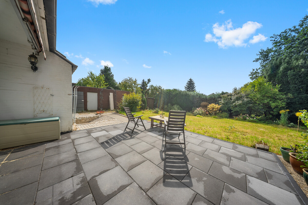 Zum Objekt gehören eine Doppelgarage sowie mehrere Außenstellplätze. Hinter der Garage befindet sich ein zusätzlicher Abstellraum, unter dem ein 6.000-Liter-Regenwasserschacht zur Gartenbewässerung integriert ist. Der Außenbereich wurde 2025 umfassend erneuert – Terrasse und Eingangsbereich präsentieren sich in zeitgemäßem Design.
