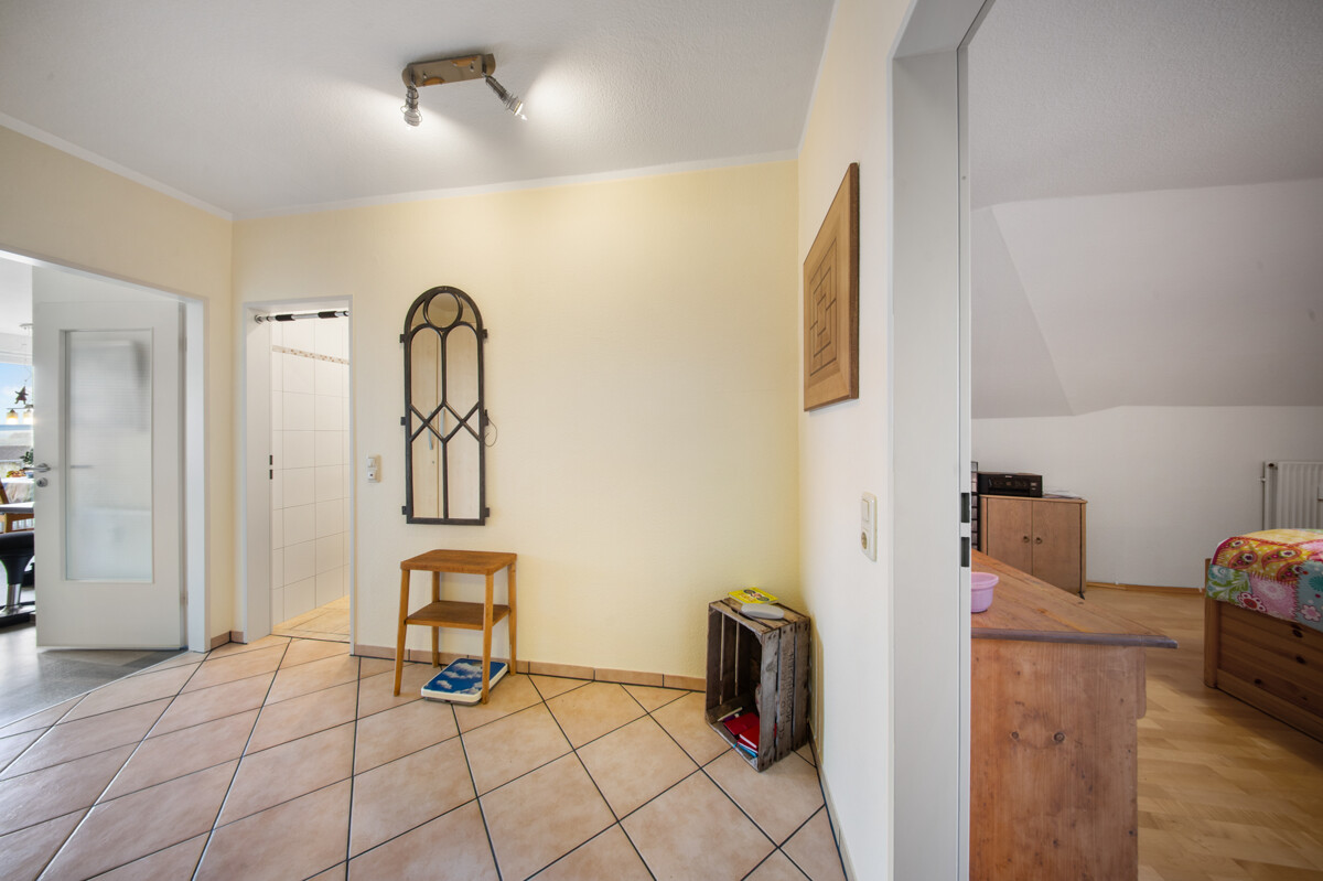Das Schlafzimmer bietet ausreichend Platz für Bett und Kleiderschrank und verfügt über einen direkten Zugang zum Badezimmer. Das Wannenbad ist somit bequem vom Schlafzimmer aus erreichbar und sorgt für zusätzlichen Komfort im Alltag. Ein separates WC ergänzt das Raumangebot sinnvoll.