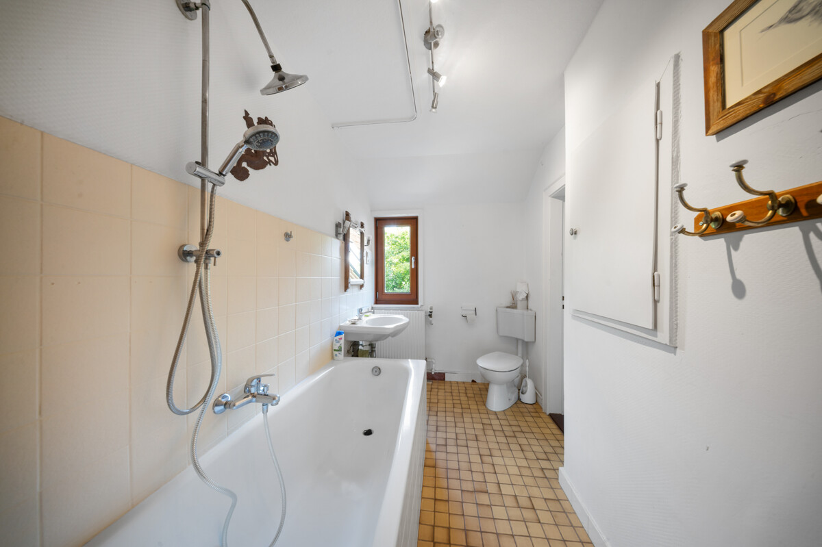 Mit drei Badezimmern und einer Vielzahl an Räumen bietet das Haus flexible Nutzungsmöglichkeiten, etwa für großzügige Wohnkonzepte oder ein Homeoffice. In den vergangenen Jahren wurden bereits wichtige Modernisierungen vorgenommen: Fensteraustausch im Juli 2020, Erneuerung des Dachs im November 2020 sowie der Bau einer großzügigen Terrassenanlage in 2020/2021. Zudem wurden Heizkörper teilweise erneuert und die Parkettböden 2019 aufgearbeitet, sodass eine solide Basis für modernen Wohnkomfort gegeben ist.
